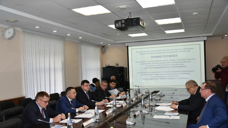Председатель наблюдательного совета Фонда содействия реформированию жилищно-коммунального хозяйства Сергей Степашин, генеральный директор Фонда ЖКХ Константин Цицин и министр строительства, архитектуры и ЖКХ РТ Ирек Файзуллин провели совещание по вопросам подведения итогов реализации программы переселения граждан из аварийного жилья.