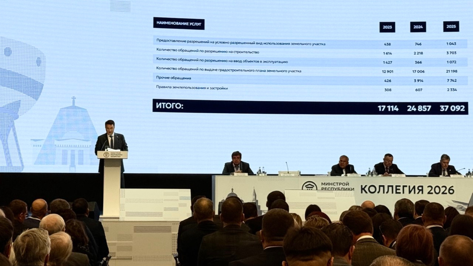 «Для формирования единой градостроительной политики на территории республики с 1 января 2024 года министерство осуществляет 12 переданных полномочий муниципалитетов в этой области на территории 43 муниципальных районов. А с 1 января 2026 года начали работу на территории городского округа Набережные Челны, из них в настоящее время 6 являются государственными услугами», - сообщил Марат Айзатуллин. - По итогам прошлого года в Минстрой поступило более 37 000 обращений, что на 49% больше, чем в 2024 году».