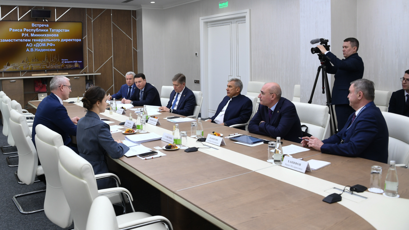 Татарстан Рәисе Рөстәм Миңнеханов «Дом.РФ» АҖ рәисе урынбасары Алексей Ниденс белән очрашты. Очрашу «Казан Экспо»да узды.