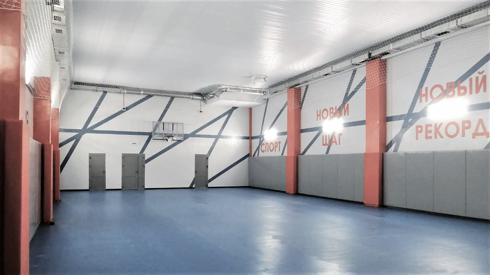 259 кв. м мәйданлы спорт залында җылыту, вентиляция һәм су белән тәэмин итү системалары яңартылган. Монда шулай ук электр монтажлау һәм бизәү эшләре башкарылган, тәрәзәләр һәм ишекләр алыштырылган, спорт линолеумы җәелгән, чишенү бүлмәләре ремонтланган.